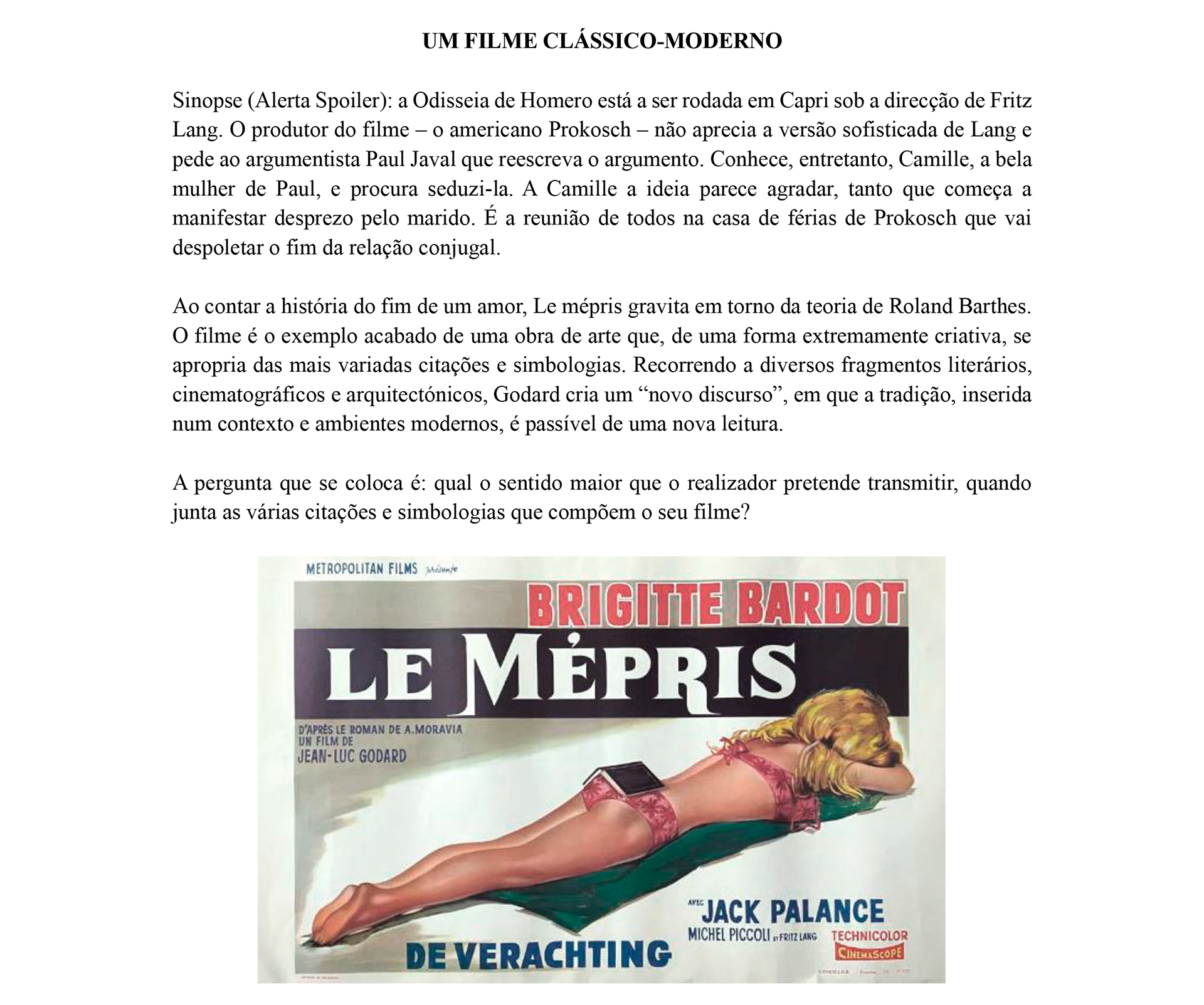 Le Mépris - Entre o Mito e a Modernidade